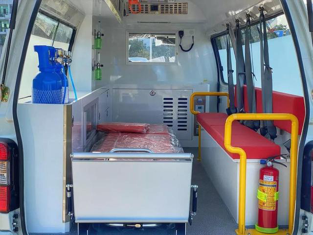 負(fù)壓救護(hù)車與普通救護(hù)車并無多大區(qū)別,駕駛艙其實和普通救護(hù)車沒什么區(qū)別,就是多了一個警報。車廂后部的對講系統(tǒng)對講機(jī),司機(jī)要通過和病患溝通都是需要通過這個對講機(jī)溝通。后面車廂內(nèi)部多了個救護(hù)車負(fù)壓裝置,車載負(fù)壓凈化器。車頂有個大功率紫外線消毒燈。比普通救護(hù)車的功率尺寸要大一些。負(fù)壓救護(hù)車和普通救護(hù)車一樣配備氧氣罐,氧氣袋。和一些急救設(shè)備,吸痰器,轉(zhuǎn)運(yùn)傳染性病人的話,病人單獨(dú)在車廂后面。司機(jī)不和病人接觸。對司機(jī)負(fù)責(zé)對病人負(fù)責(zé)以防交叉感染。監(jiān)控錄像系統(tǒng)可以實時看到病人在車內(nèi)的情況。