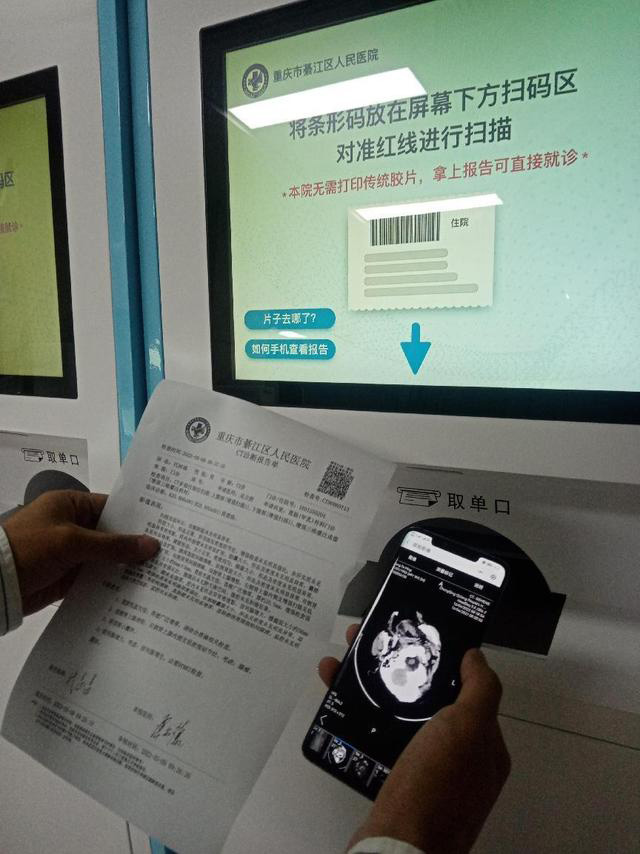 4、膠片和報(bào)告怎么領(lǐng)?。坑脳l形碼,在自助取片機(jī)自己領(lǐng)取,膠片和報(bào)告一般都是同一個(gè)條形碼。