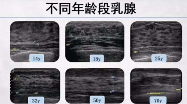 正常乳腺超聲聲像圖,乳腺超聲設(shè)備高分辨力超聲能夠清晰顯示乳腺及其周圍組織的解剖結(jié)構(gòu)??梢钥吹饺橄傧袤w,高回聲的皮膚層,低回聲的皮下脂肪層,然后是乳腺的腺體結(jié)構(gòu),那么后方的是乳腺腺體后脂肪,胸大肌,胸膜,乳腺的支撐機(jī)構(gòu)韌帶。乳腺掃查的時(shí)候乳頭乳暈區(qū)的掃查。乳頭的病變率還是有的。使用多量耦合劑觀察,對(duì)乳頭非常細(xì)致的掃查。觀察乳腺乳頭的情況跟改變。乳頭邊界清楚的外凸圓形結(jié)節(jié),均勻的中等回聲,后方都伴有聲影。乳腺導(dǎo)管與小葉,類似一小串葡萄。
