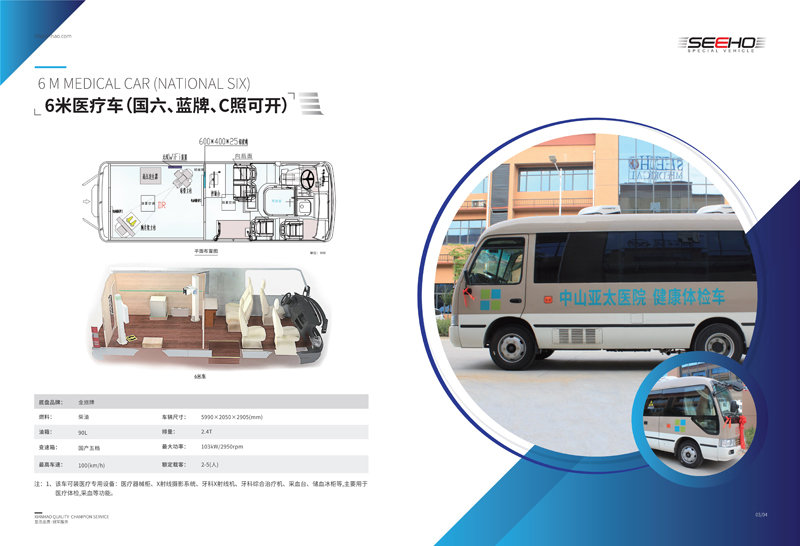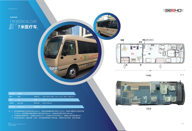 體檢車是為醫(yī)療行業(yè)設(shè)計(jì)的可以滿足常規(guī)體檢、治療、應(yīng)急醫(yī)療救援等功能的專用車輛,車內(nèi)配備專業(yè)車載X射線機(jī)、心電超聲檢查、電測(cè)聽(tīng)室、全自動(dòng)生化分析儀以及檢查床、冰柜、空調(diào)和紫外線消毒燈等先進(jìn)醫(yī)療儀器設(shè)備。