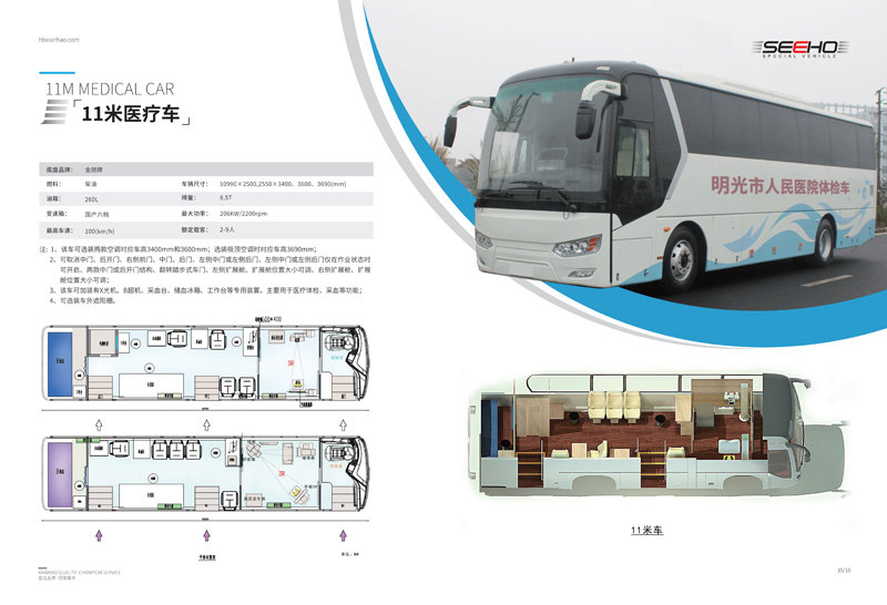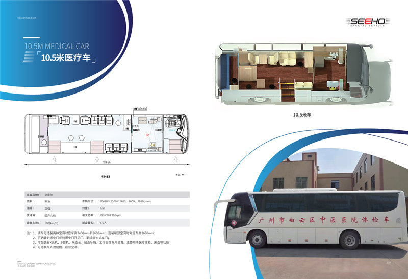 我司生產(chǎn)的職業(yè)病體檢車均選用一線品牌車(宇通、金龍、金旅); 車長(zhǎng)有6米、7米、8.2米、9米、10.5米、11米、12米可選。