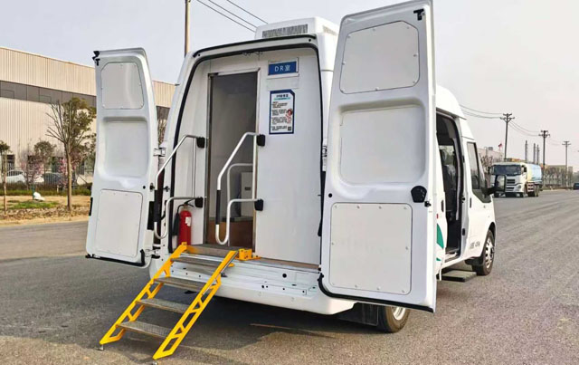 DR體檢車集成專業(yè)DR影像系統(tǒng)、輻射防護(hù)、智能登記、數(shù)據(jù)傳輸于一體的移動醫(yī)療平臺,高端影像設(shè)備到智慧醫(yī)療系統(tǒng),從體外診斷到康復(fù)護(hù)理,相當(dāng)于一個車輪上的標(biāo)準(zhǔn)化放射科。核心配置:搭載高頻高壓發(fā)生器、高清平板探測器、專業(yè)影像工作站,成像清晰、輻射劑量低,滿足胸部DR、脊柱篩查等常規(guī)診斷需求。單臺車單日可服務(wù)150-300人次,效率遠(yuǎn)超傳統(tǒng)模式。DR體檢車是移動醫(yī)療的硬核裝備,更是健康中國建設(shè)的重要支撐。布局兼顧上下車便利性與隱私保護(hù)。,尤其適用于基層老年人體檢等公衛(wèi)服務(wù)場景。