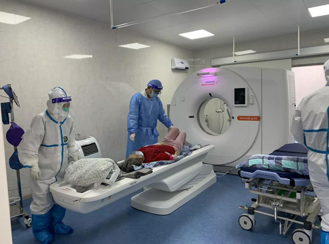 醫(yī)院發(fā)熱門診就診,長方體箱子中進(jìn)行CT胸部檢查。這個就是方艙CT,在疫情防控期間發(fā)揮了重要作用。嚴(yán)格的場地布局,設(shè)備組裝,質(zhì)量控制檢測,放射防護(hù)檢測,就可以馬上投入使用。方艙CT獨立在醫(yī)院大樓外面,主要是配套發(fā)熱門診使用。如果有疑似病人就通過專用通道進(jìn)入方艙CT檢查。雙向單通道沒有與外界聯(lián)系。CT檢查準(zhǔn)時高效,確保了檢查的強隔離沒有任何接觸,可以保障檢測人員跟病人沒有感染的風(fēng)險。采用閉環(huán)管理,檢查人員的口罩、隔離衣服、手套都是全方位的消毒。CT掃描檢查好后的圖像質(zhì)量。上傳到數(shù)據(jù)系統(tǒng)然后查看圖像。各個科室的醫(yī)生也可以通過網(wǎng)絡(luò)看片。方便高效快捷。方艙CT的啟用為患者提供精準(zhǔn)的影像診斷,為醫(yī)生提供快捷的影像報告、準(zhǔn)確的參考依據(jù),疫情防控提供有力的數(shù)據(jù)支持。